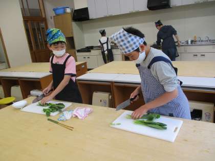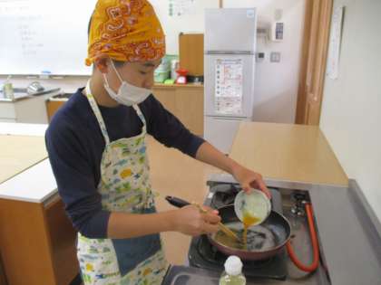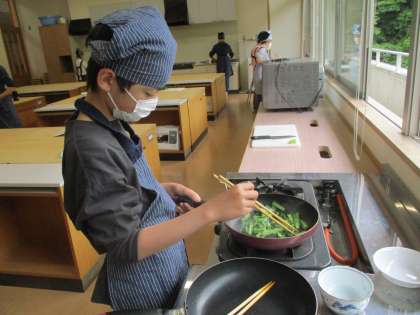 6年生になって2度目の調理実習を行いました。今日は、「青菜のいためもの」と「スクランブルエッグ」を一人ずつ調理しました。前回の「いろどりいため」の経験を生かして、手際よく作ることができました。