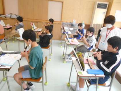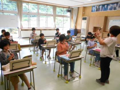 5年生は音楽科で、高いミの音をリコーダーできれいに奏でることにチャレンジしていました。息の吹き方やすき間の開け方を試行錯誤しながら取り組んでいました。