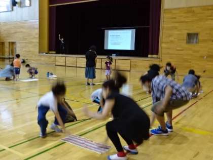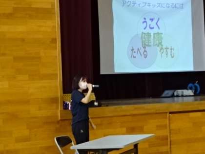笑顔スポーツ学園事務局長 林賀子先生を講師にお招きし、「親子でできる運動遊び体験」と題した講演と実技を行いました。お家の方と一緒に静かに話を聞いたり、楽しく動いたりすることができました。