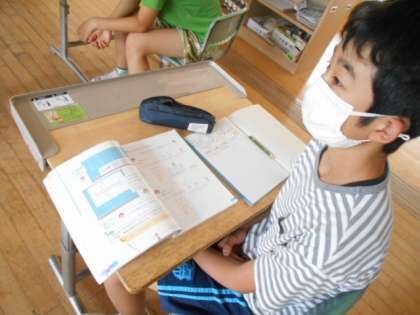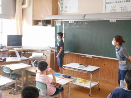 6年生は算数科で、「分数と分数のわり算」の学習に取り組みました。なぜ逆数をかけるのかを検討しながら学習しました。