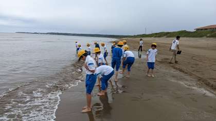 海辺で水遊びをしました。波は穏やかで楽しんでいます。