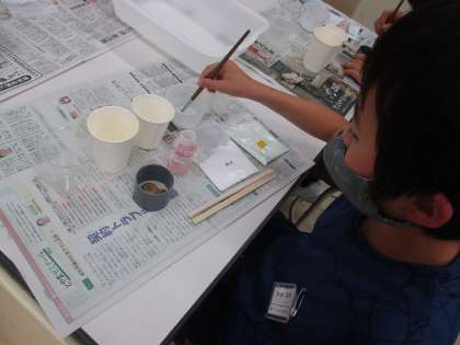 富山県総合教育センターの方々と一緒に化石の模型作りをしました。アンモナイトの型をとり、石こうを流し込みました。月曜日に仕上がる予定です。実際にアンモナイトの化石を触ってみると、「思ったよりも固かった。」と感想を述べていました。大昔に生きていた生物の形がそのまま残っていることに驚いている様子でした。