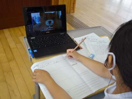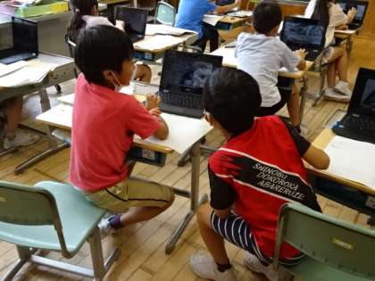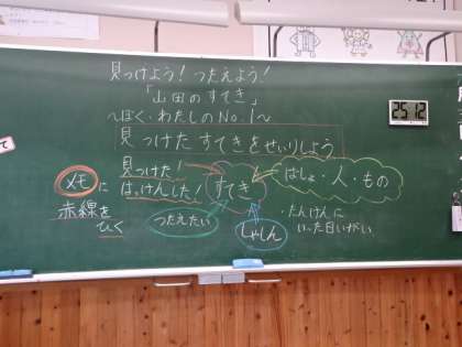 これまでたくさん見付けた「山田のすてき」の中から、自分のNO.1を考えています。ワークシートやクロムブックを見直したり、友達と話をしたりしながら考えています。