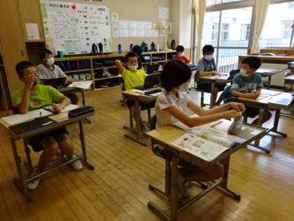 夏をすずしくさわやかに過ごすための工夫について、Xチャートを使って出し合った考えを基に話し合っていました。