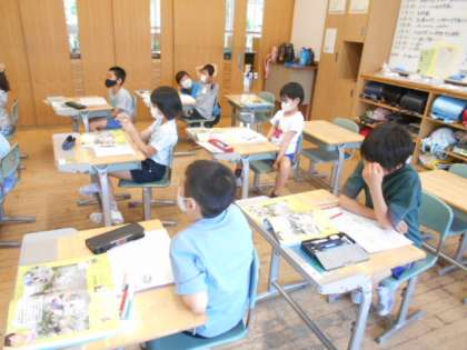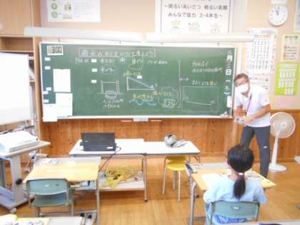 4年生は理科で、「流れる水のはたらき」を学習しました。雨が降った後に地面はどのような様子になっているのかを予想したり、実際に水を流して確かめたりしました。