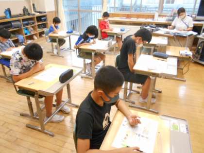 6年生は、社会科の学習のたしかめテストを行いました。公民学習と歴史学習を振り返りながら問題を解きました。