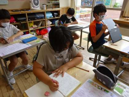テストで書けなかった漢字や間違えた漢字を見直しました。何が苦手なのか、どうしたら克服できるのか、一人一人が方法を考えました。ノートに何度も書いたり、デジタル教材で字形を確認したり、注意するポイントをまとめたりと、自分で考えた方法で練習に取り組んでいました。