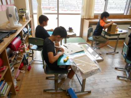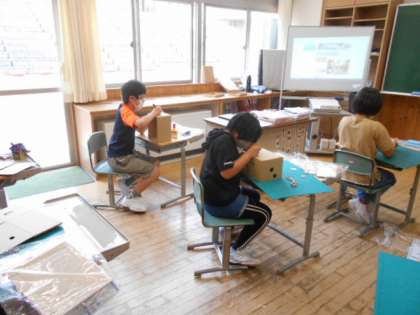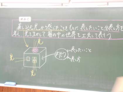 箱に様々な大きさや形の穴をあけ、箱の中に差し込む光から感じることを生かして作品作りに取り組みました。