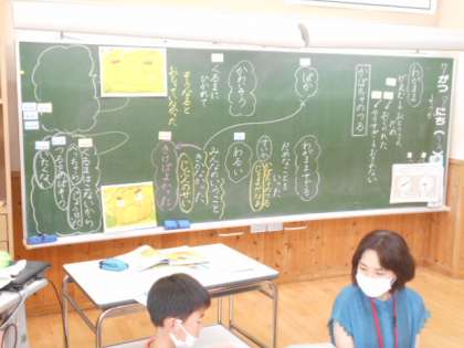 「かぼちゃのつるが」という資料文を読み、わがままをせず友達となかよくすることについて考えました。