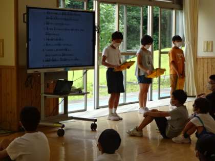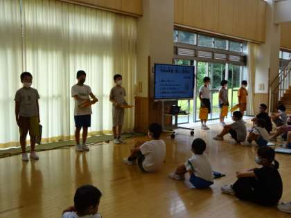 生活安全委員会の児童が、夏休みの約束を紹介した後、地区ごとに分かれ、1学期の様子や夏休みを安全に過ごすために気を付けること等について話し合いました。