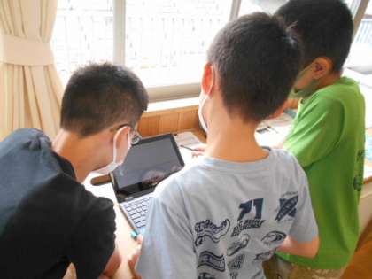 6年生は9月に行う運動会の応援パフォーマンスについて、赤団、白団が分かれてアイディアを出し合っていました。