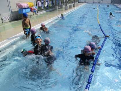 今日もとても暑い日になりました。子供たちは、思い思いに泳いだり、遊んだりしていました。
