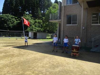 運動会の応援パフォーマンスの練習と、チャレンジ陸上記録会に向けた走り幅跳びの練習をしました。短い時間で集中して取り組みました。