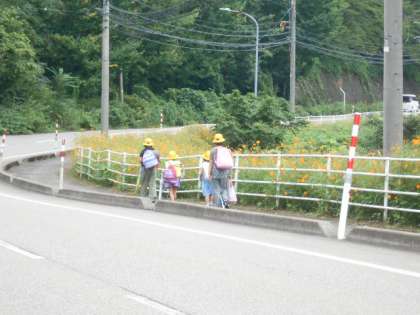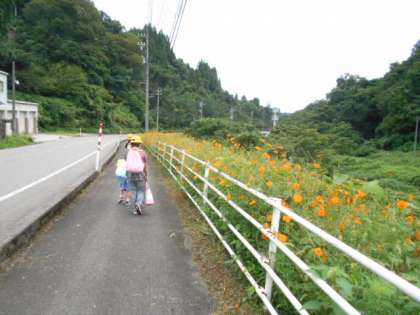 小学校から湯地区に向かう通学路の脇にキバナコスモスの花が満開に広がっています。昨年度に続いてお世話をしてくださっている地域の皆さん、本当にありがとうございます。