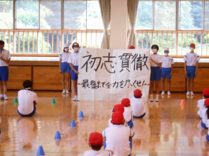 運動会に向けて小中合同の結団式:8月31日(水)