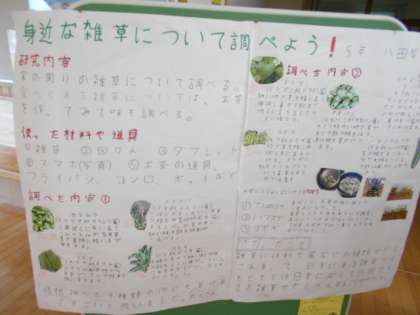 身近なことで興味・関心のあることや、やってみたいことをもとにテーマを決めています。調べてまとめることで表現力を伸ばしていますね。