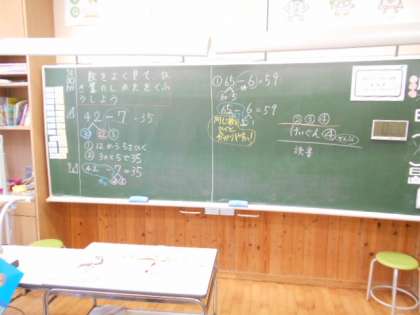 2年生は、くり下がりの引き算の学習に取り組みました。くり下がるときに位と関係づけて考えていました。
