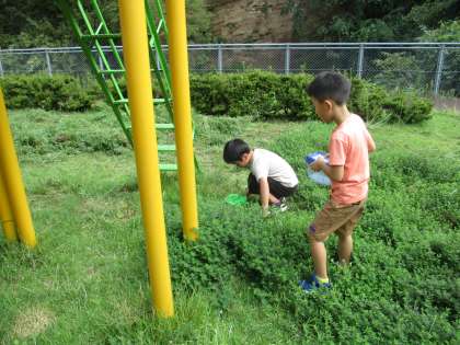 「バッタがいた!」「かわいい!」「かまきりはどこかな」