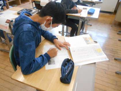 6年生は道徳科で、歴史上の人物「鑑真」の生き方がわかる資料文を読みました。自分の願いを達成するために諦めなかった姿に心を動かしている様子がうかがえました。