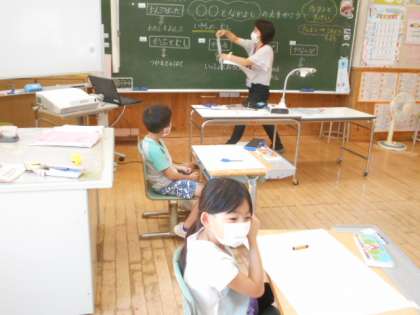 1年生は図工科の学習で、「生き物となかよし」という課題で絵を描きました。子供たちは自分が描きたい生き物を決めるのに思案していました。