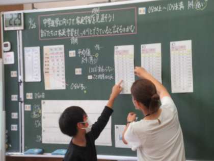 市内小学校の算数科6学年部会の先生方をお迎えし、授業研究を行いました。家庭学習時間についてのデータを分析し、それを元にしながら、自分たちが家庭学習をしっかりできているのかどうかについて、根拠を明確にしながら考えを伝え合いました。