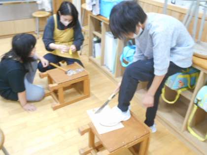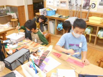 4年生は図工科で、木材を切ったり、つないだりする製作活動に取り組みました。自分の願いを生かしたユニークな作品を仕上げていました。