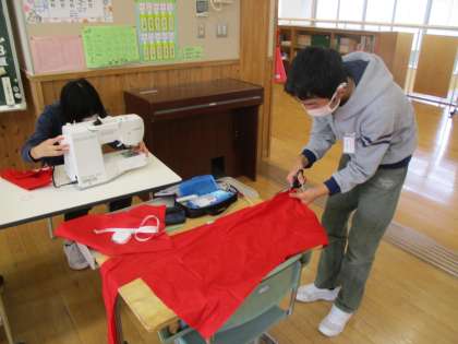 学習発表会に向けて、劇に必要な小道具や衣装を手分けして作っています。互いにアイデアを出し合いながら、より雰囲気が高まるように準備を進めています。
