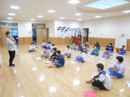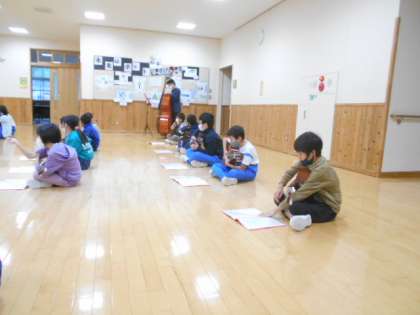 朝活動の時間に4〜6年生でマンドリンの合奏をしました。学習発表会で演奏する2曲を合わせましたが、それぞれのパートの音の重なりが美しくなってきました。
