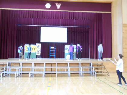 6年生は英語劇に挑戦します。今日はステージを使って通し練習をしました。