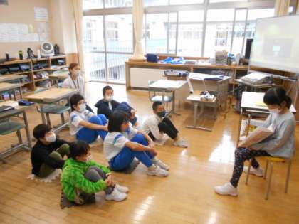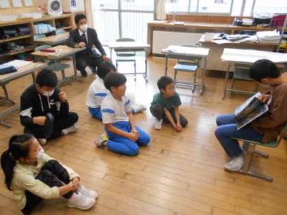 スマイル班での読み聞かせを行いました。今日の読み手は中学年の子供たちでした。