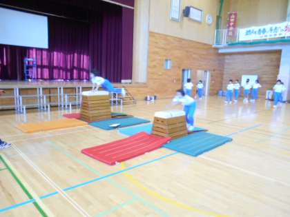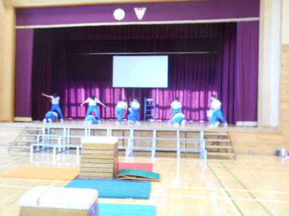 5年生は学習発表会で演じる運動表現をステージで練習しました。出入りの仕方等、動きの確認をしながら進めました。