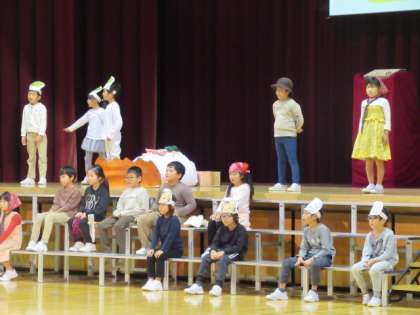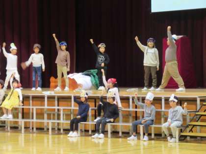 誰でも知っているお話を、全員が役になりきって堂々と演じました。大きな声でしっかりと表現する姿に、一人一人の成長を感じました。