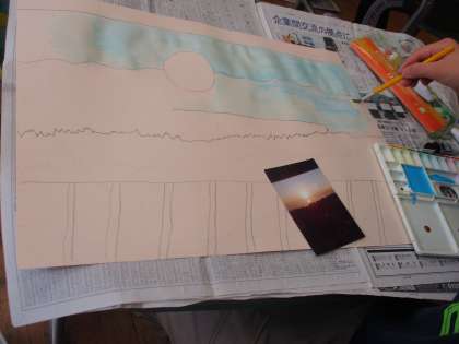 これまで1番心に残っている場所を思い出し、水彩で描きました。完成した作品は山田地域文化祭で掲示します。