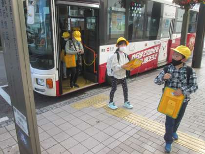 昨日10月27日(木)に、公共交通機関を利用した社会科校外学習を行いました。子供たちは、乗り物を利用しながら、富山市内の様子について観察をしました。住んでいる山田と比較すると、富山駅周辺は人や車が多く、大きな建物がたくさんあることに気付くことができました。また、インタビューにも挑戦し、富山には県外の人が多く来ていることも分かりました。