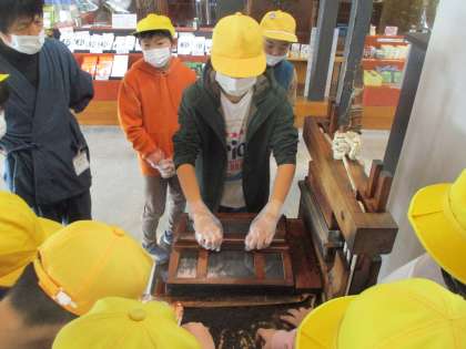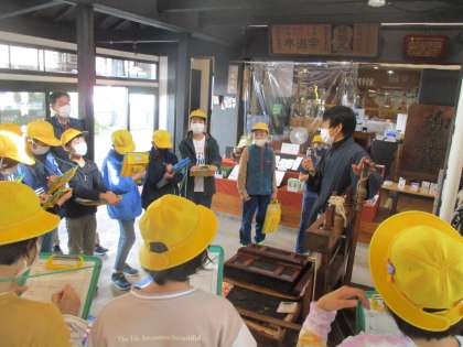 池田屋安兵衛商店では、富山の売薬の歴史について教えていただきました。また、薬の反魂丹を作る体験もしました。