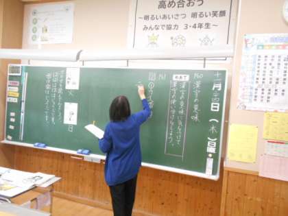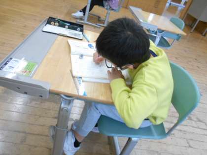 3年生は国語科で、同じ読み方で意味が違う漢字を学習しました。お話の文脈に合わせて選ぶとよい漢字を考えました。