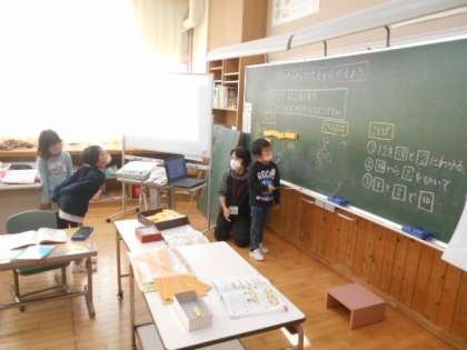 1年生は算数科でくり下がりのある引き算を学習しました。子供が黒板の前でブロックを使いながらどのようにして計算ができるかを説明していました。一人一人が計算の過程を説明できるようになりましょう。