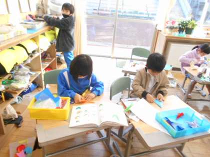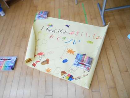 1年生は生活科で、秋のワクワクランドに上級生を招待する準備に取り組みました。招待状を作る子、プログラムを書く子、遊び場の準備をする子など、役割を分担して活動しました。
