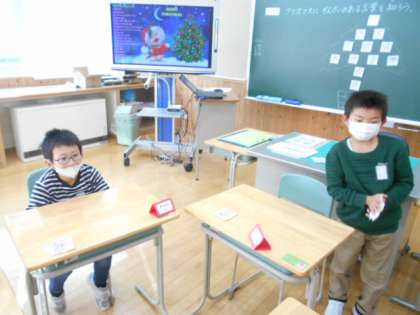 3年生は外国語活動で、英語のカードを使ったゲームを楽しみました。自分のカードが増えていくことを喜ぶ様子が見られました。