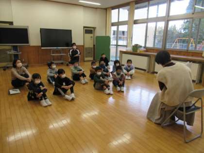 今日は絵本「One(作・絵:キャサリン・オートシ、訳:乙武洋匡)」の読み聞かせをしていただきました。個性が異なる仲間との関係や、直面した問題に立ち向かう勇気をもつことの大切さを考えさせられる絵本でした。