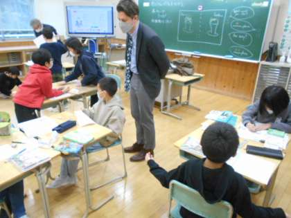 オリジナルフルーツパフェを作ろうという課題で学習をしました。「どんなフルーツをいくつほしいか」をペアの友達と英会話でやりとりしながら進めました。