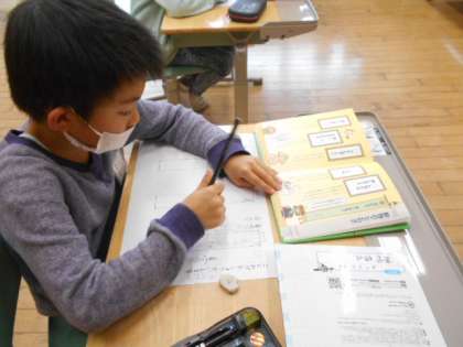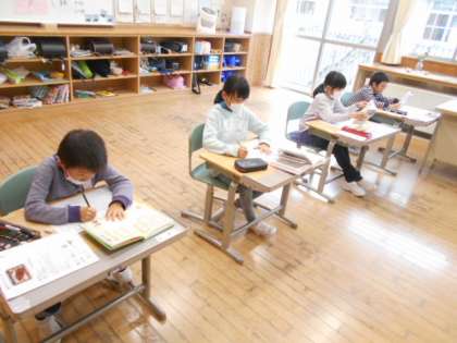 3年生は国語科で「故事成語」について学習しました。自分で詳しく知りたい故事成語を本で調べてまとめていました。