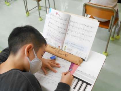 4年生は音楽科で、もみじの曲の鑑賞の学習に取り組みました。フレーズ毎の違いに注目してよく聞き取っていました。