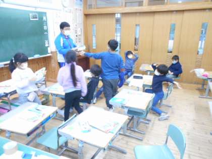 2年生は互いの自学ノートを見合い、学習したことのまとめ方や内容を学び合いました。