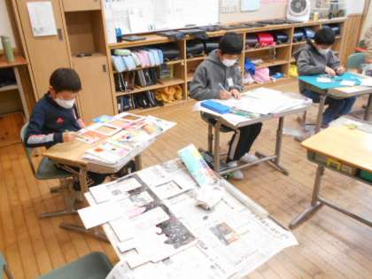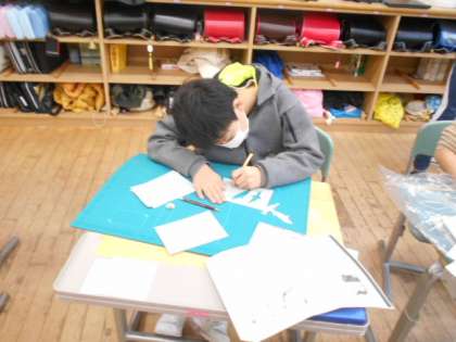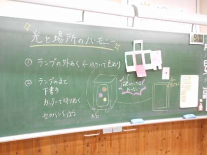 厚紙をカッターで切り抜いて形を作り、そこにカラーセロファンを貼って光が差し込むように作品作りに取り組みました。
