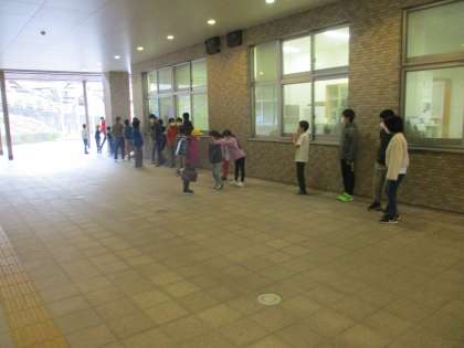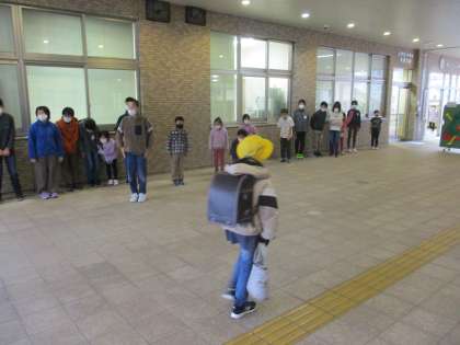 相手の名前を言ったり、目をつないで挨拶をしたりする子供が増えています。挨拶運動の最後に、委員長がよいところをみんなに伝えていました。