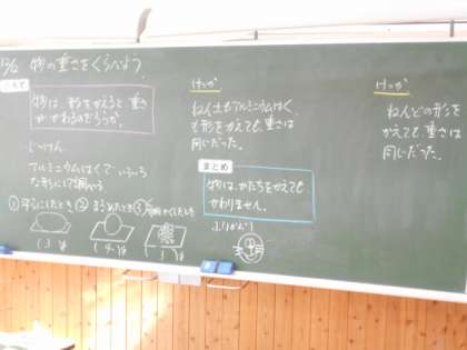3年生は算数科で、「ものの重さは形をかえると変わるのだろうか」という課題で学習しました。