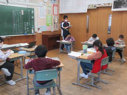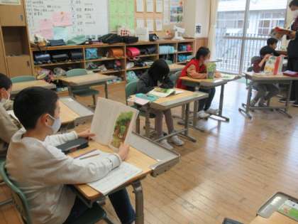 「プラタナスの木」を学習しています。全員で音読した後、最後の場面について話し合っていました。