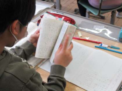 やなせたかしさんの伝記を読んで、主人公の考え方をまとめて交流しました。意味の分からない言葉があると、国語辞典を使って調べながら読み進めています。調べた言葉には付箋を貼っています。