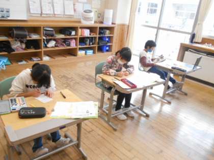 3年生は国語科で、年賀状を書く学習に取り組みました。宛名の面と挨拶の面を分けてきちんと書き上げていました。